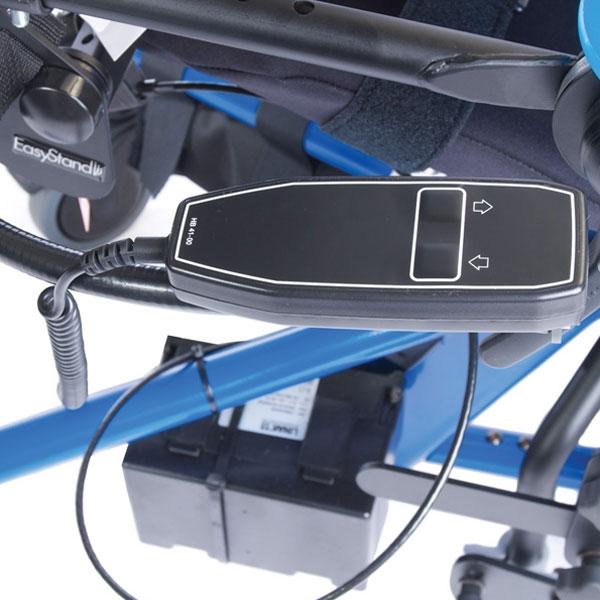 Brings the child to the standing position, battery operated. Includes a controller, rechargeable battery, Linak actuator, and an emergency release.