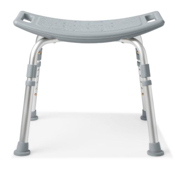 Sturdy, lightweight, anodized aluminum frame resists rusting. Legs adjust in 1" increments with just a push of a button to an ideal height between 13" and 20". Textured, blow-molded polyethylene wide track seat with built-in handholds provide extra safety. Rubber feet grip even wet surfaces. Attractive grey color provides greater contrast and depth perception...