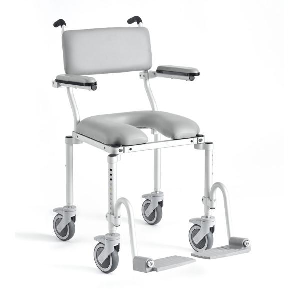 Multichair rolling shower commode chair is versatile and portable. One of the lightest shower commode chairs on the market.