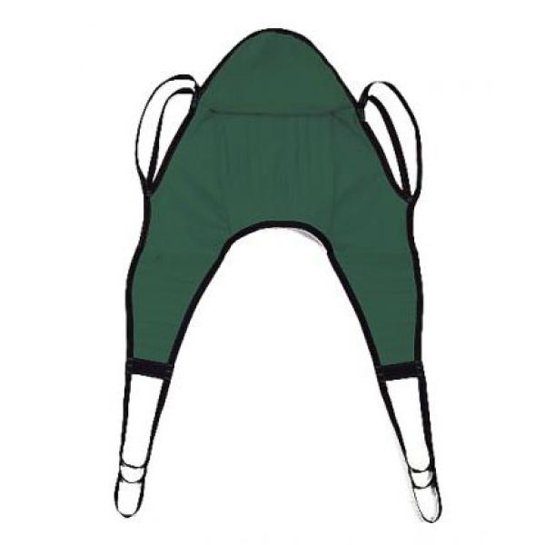 Lift sling headrest support positions patient's head comfortably during transfers.